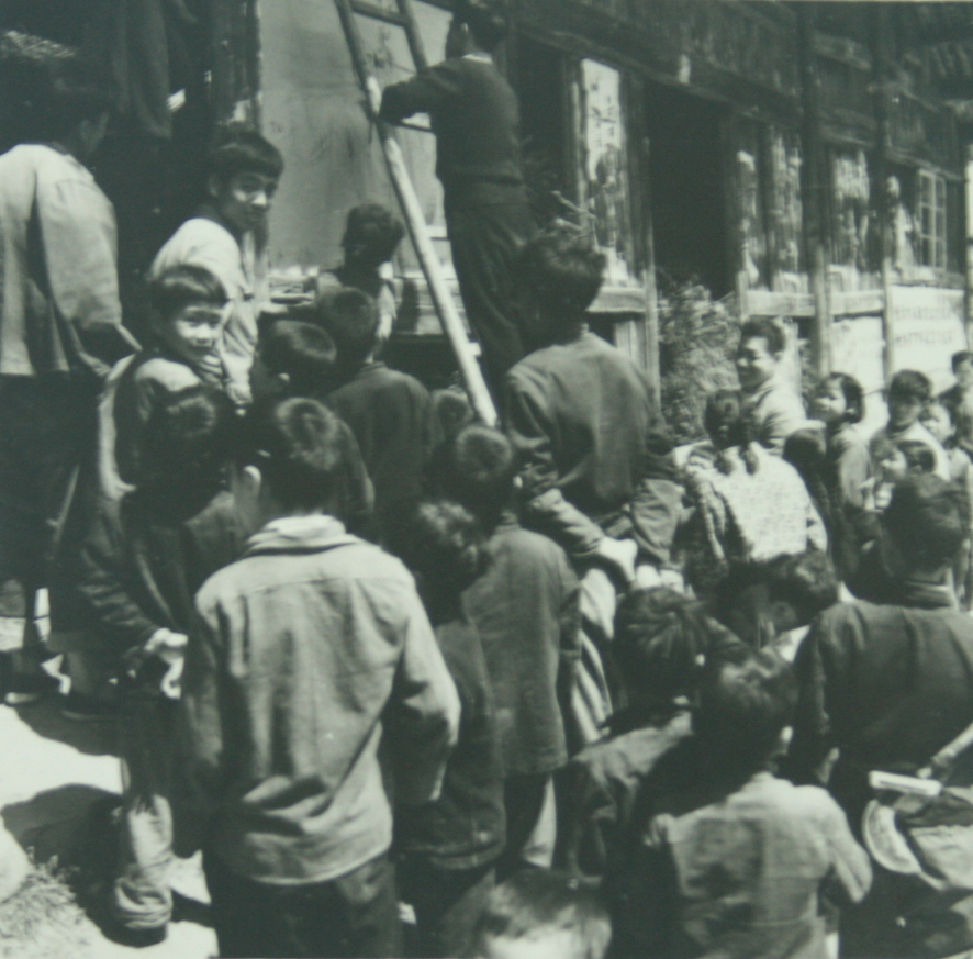 名称:1976年徐启雄在街头墙壁上作宣传画